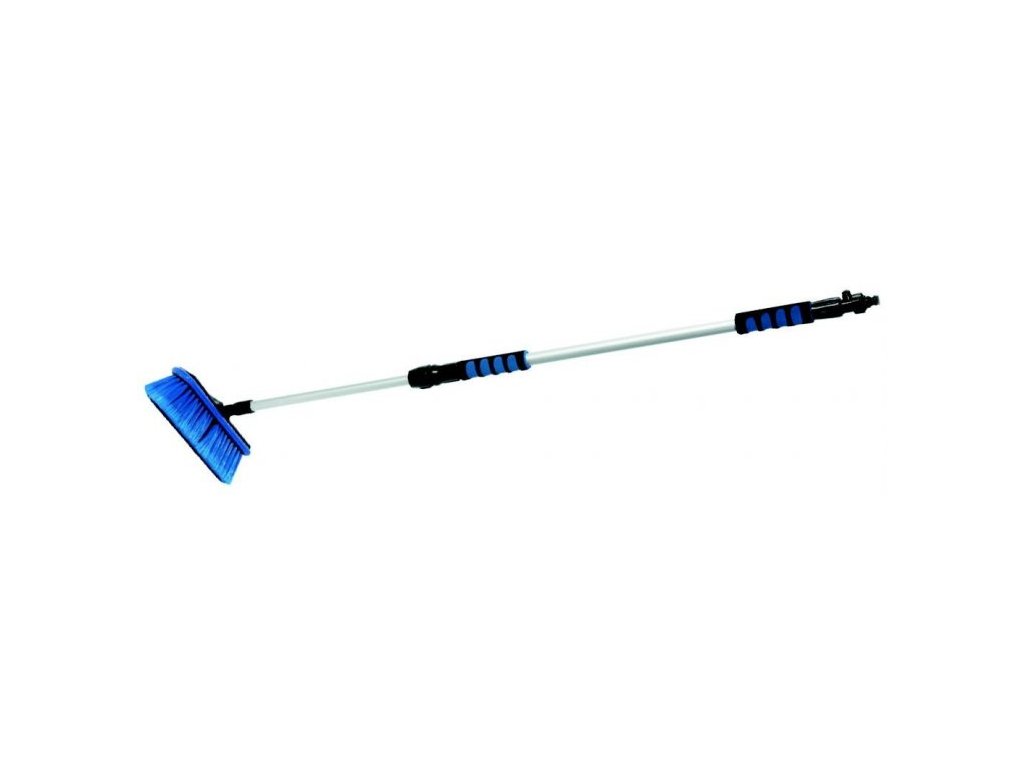 Teleskopický, průtokový kartáč s ventilem určený k mytí užitkových automobilů, nákladních automobilů, karavanů apod.